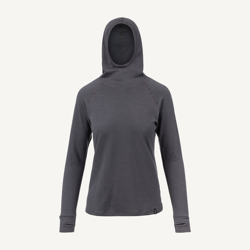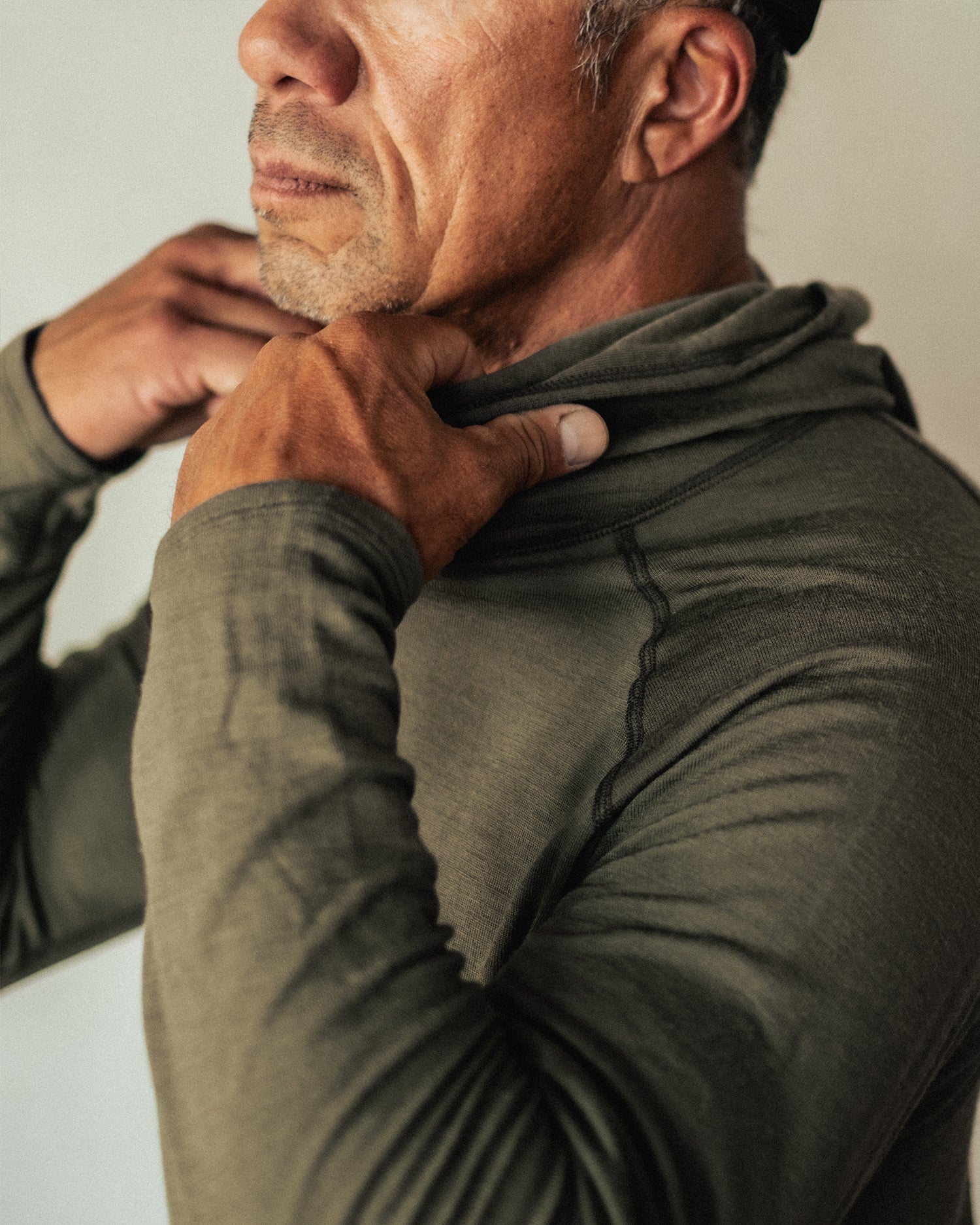 Comet represents where our Merino Wool layers step it up a notch in terms of insulation. Coming in at a whopping 315 grams per square meter (more than double our lightest wool fabric line, Vapor), this American made Merino Wool fabric is designed to take advantage of the welding together of two separate fabrics - a Merino Wool outer layer and a recycled polyester inner layer - to create an unstoppable insulating, sweat wicking piece. How does that work, exactly, and why the “bi-ply” design? The insulation piece is easy: Air gets trapped between the two layers, responding to the temperature of the body and retaining that heat when things get chilly. The sweat-wicking piece is a little more scientific: polyester is hydrophobic while wool is hydrophilic, meaning as the body sweats the polyester component “repels” the sweat off the body and into the outer layer where the wool then releases the sweat as water vapor, keeping your body dry and free of heat-sapping moisture. Available in crews, quarter zips, hoodies, leggings, balaclavas and gaiters.