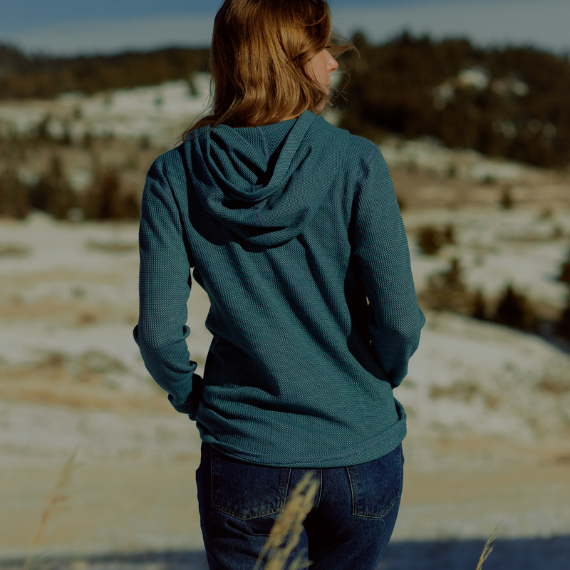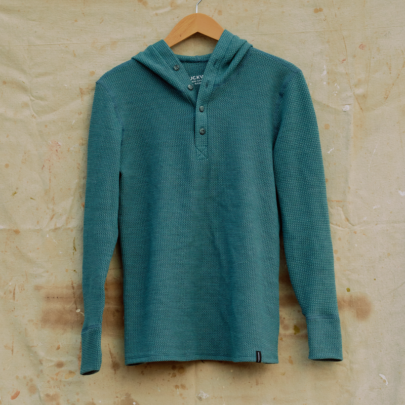 Around 130 years ago, a revolutionary design in wool wear was born in the midlands of England. There, at the time one of the world’s wool clothing manufacturing powerhouses (eventually supplanted by the industrial revolution boom seen in the late 19th century in the United States), knitters successfully created a “waffle knit” fabric designed to be at one moment breathable and the next highly heat retaining. How? More on that in just a moment. For the next century, wool layer fanatics became accustomed to this waffle knit design, which emerged as a timeless standard. And then, just like that, they fell out a favor to either synthetics or single-ply Merino Wool layer design. We asked ourselves here at Duckworth: “Why?” When you consider why the dimpled waffle-knit design was so popular in the first place - trapping air in those very same pockets when layered underneath another piece of fabric or freely allowing the passage of cool air when worn alone - why would anyone abandon wanting this useful tool in their arsenal? So we decided to pump fresh life into the concept, eventually developing Polaris: an American made Merino Wool base layer line infused with our premium Montana fleece and some modern tech upgrades. Beyond versatile and with such an understand performance capacity, we call the 175 grams per square meter Polaris the “Survival Kit Baselayer,” a name that speaks for itself. Available in crews, hoodies and henley.