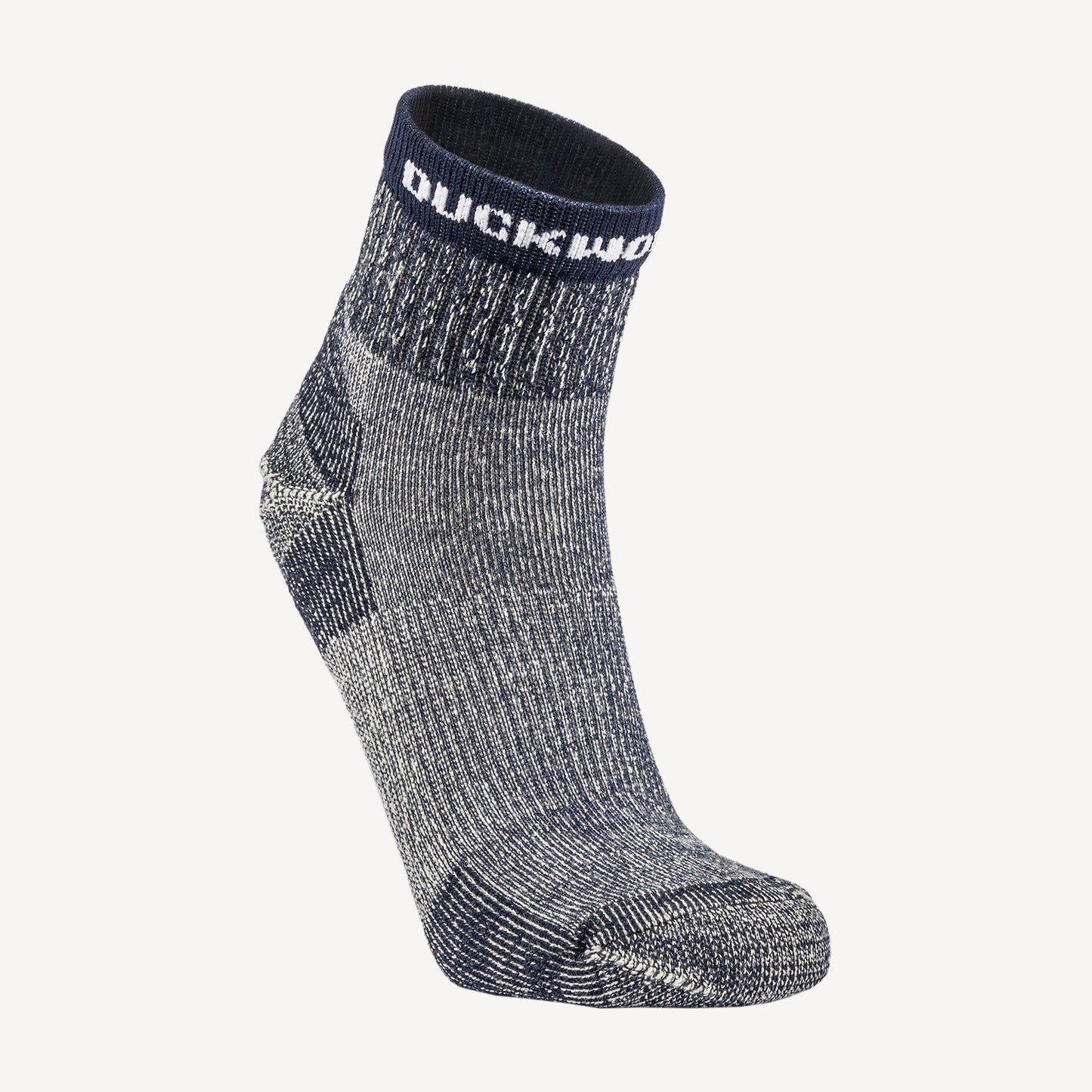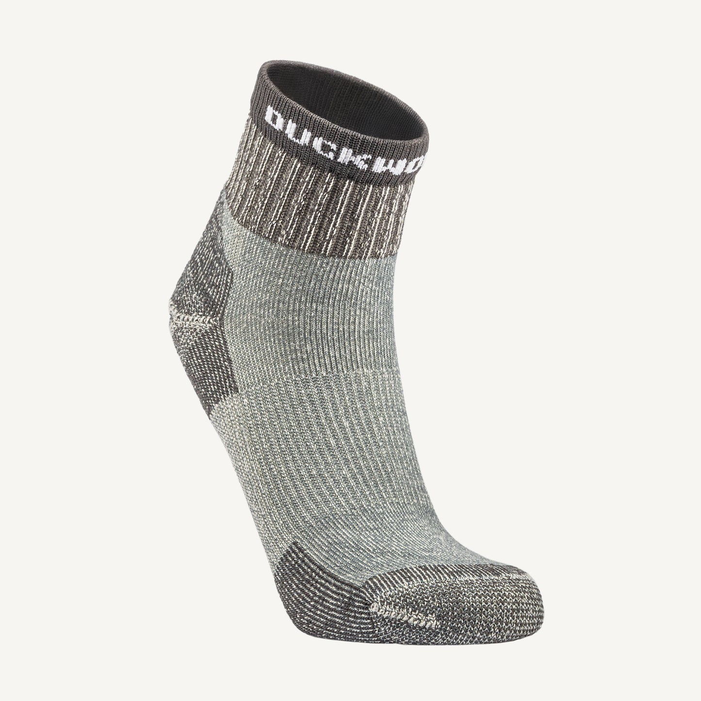 Everyone needs a pair of Duckworth Merino Wool hiking socks. They are lightweight, naturally antimicrobial (odor-free), itch-free, moisture-wicking and quick-drying. The Merino Wool fabric is naturally cooling, but also traps heat when you need it. We have crafted this design to have extra cushion in the pressure points of the foot. The specialized ring toe seam construction adds extended cushion around the toe seam for impeccable comfort. Extremely cold winters and scorching hot summers are no match for Merino. With a quarter crew height and athletic fit that stays put and prevents blisters, these will become your new favorite wool hiking sock. American-made with Montana wool, these unisex socks are available in multiple colors.